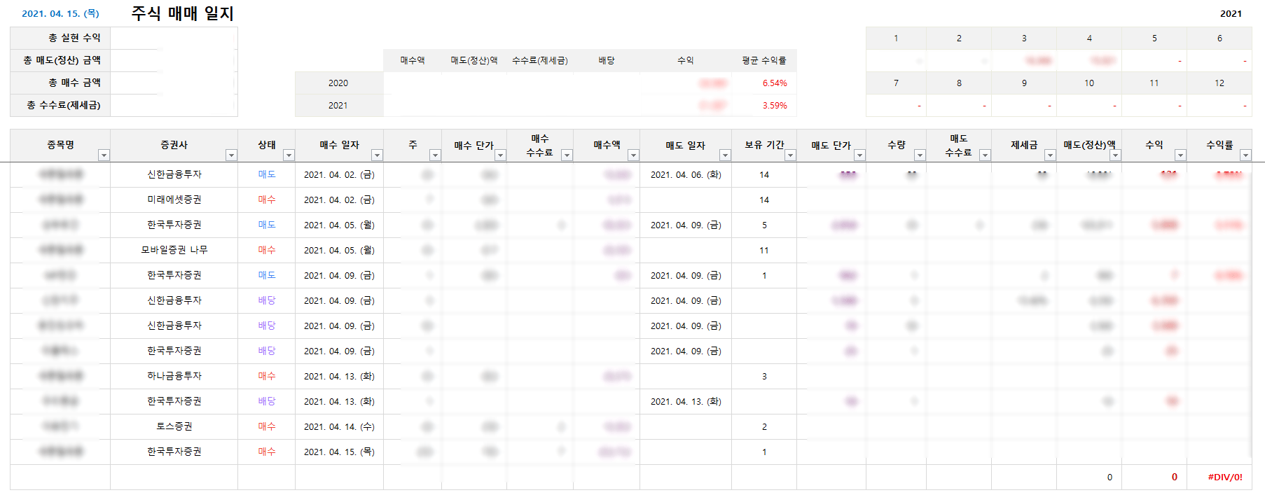 이번엔 배당금 내역도 엑셀에 포함했다.
