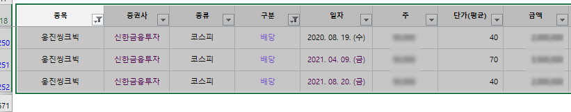 | 당기순이익 | 당해실적 | 43,353 | 358 | 12012.6 | - | - |
