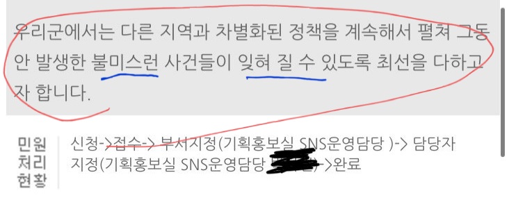 ② 다른 지역과 차별화된 정책을 계속해서 펼쳐 그동안 발생한 불미스러운 사건들이 잊힐 수 있도록 최선을 다하고자 합니다.