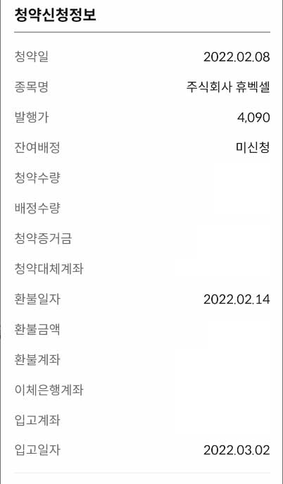 휴벡셀/유상증자또는주식관련사채등의청약결과(자율공시)/2022.02.09